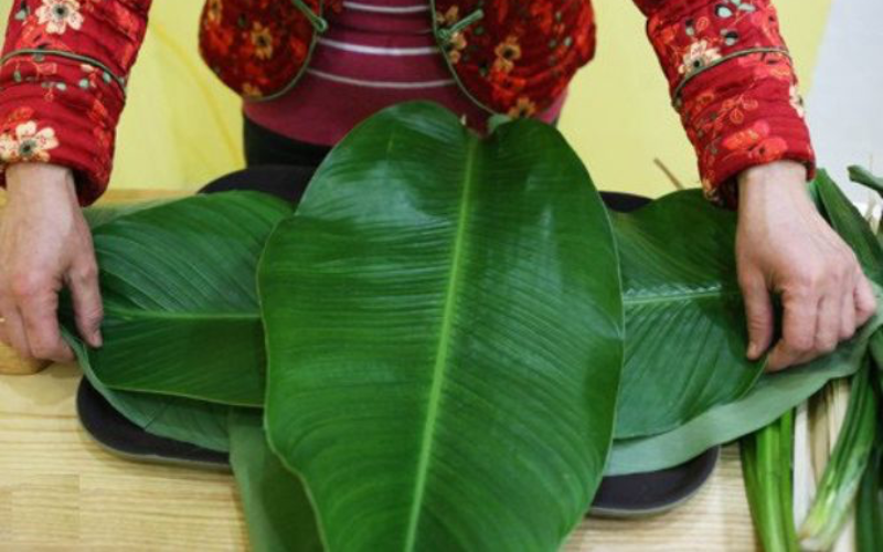 Lá dong: Chọn lá bánh tẻ (không quá già, không quá non), khổ rộng, màu xanh đậm, không bị rách.